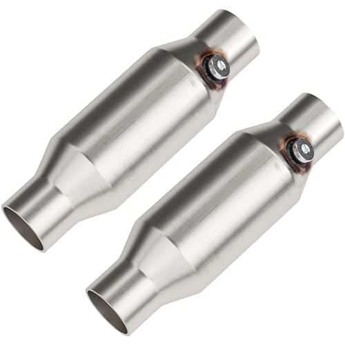 - [Fitment] – Universal Catalytic Converter 2.25" Inlet , 2.25" Outlet , 11" Overall Length. Please check whether your vehicle exhaust has the appropriate size before purchasing to make sure that the standard universal exhaust is suitable for your car. (Note: Professional installation would be highly recommended).