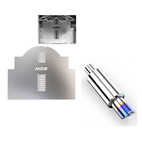 MZS Catalytic Converter Protection Shield + Exhaust Muffler Universal for Car Sedan SUV Truck Vehicles (2.25″ Inlet 3″ Outlet Titanium Burnt Tip)