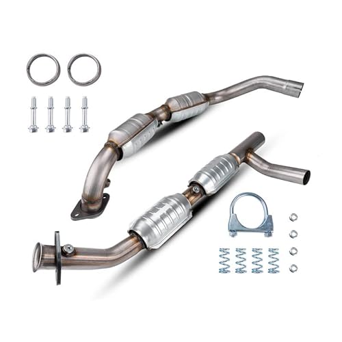 - [FLANGE TO FLANGE DESIGN] — These free-flow catalytic converters have bolt-on connections and flange to flange design for effortless installation. They’re also complete with full accessories as gaskets and hardware, facilitating your replacement. & Exhaust
