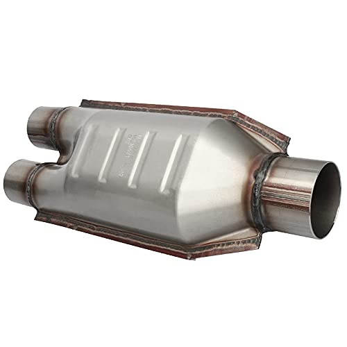 - 【Vehicle Fitment】Standard 2.5" outlet and double 2" inlet. Universal fit for vehicles with similar size outer diameter exhaust pipe. Please make sure this item fits your vehicle.