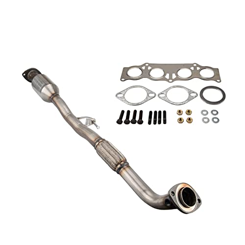 - 【High-quality】High-flow catalytic converter is made of high-quality heavy-duty stainless steel for durability. Sturdy welded connections withstand high temperatures and pressures for extended service life. Honeycomb design helps purify exhaust gases.Catalyst Convertor is designed with bolted and flanged connections for easy installation. Comes complete with gaskets and hardware for easy replacement.